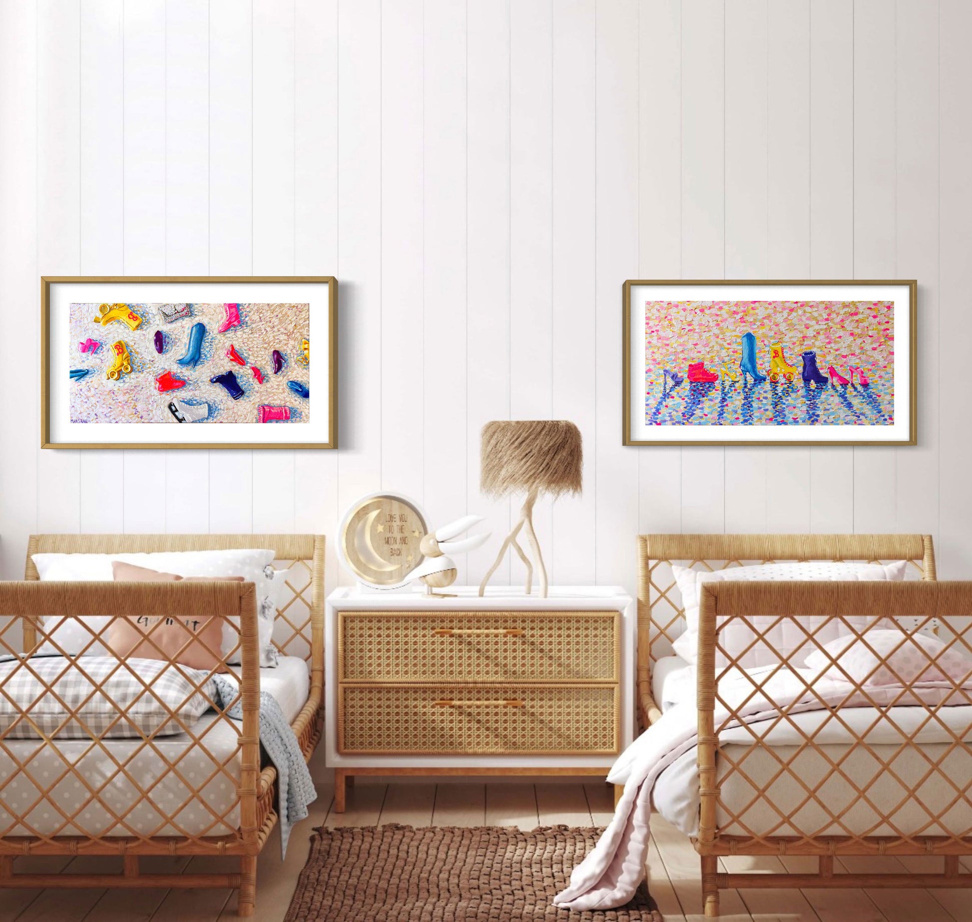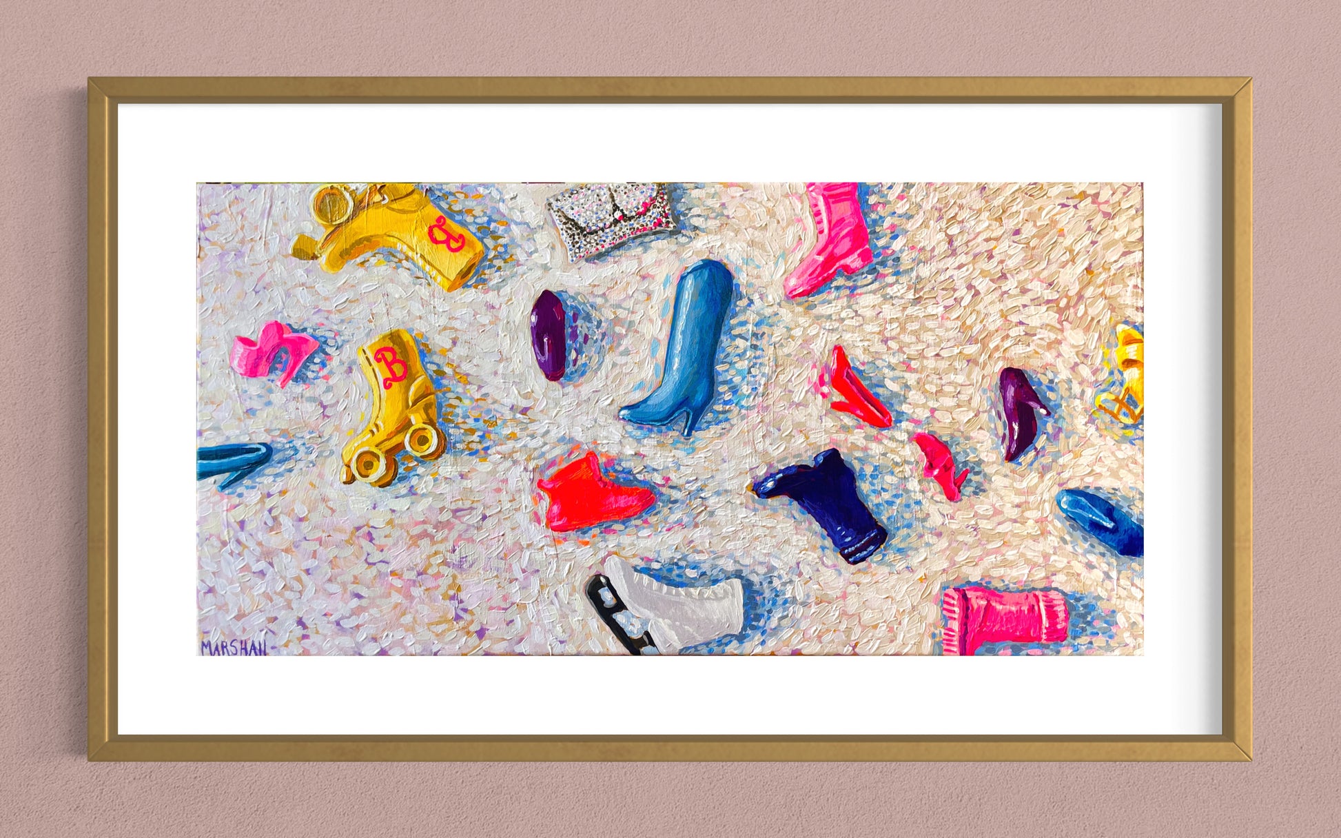 This captures that childhood magic of seeing not a mess when these neon baubles dot the floor, but instead - possibility, imagination sparks, joy, curiosity, fun, and an opportunity to create your world your way for your Barbie, who we know, is actually you. These little pieces strewn out on the floor are the map take you to your own land, in this case - Shoe-La-La Land!